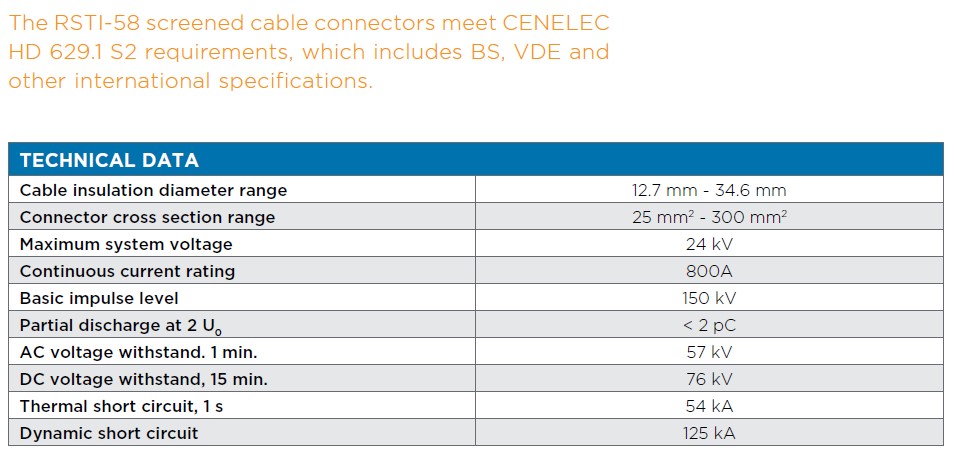 RSTI-58 are designed to connect single and three-core polymeric cables